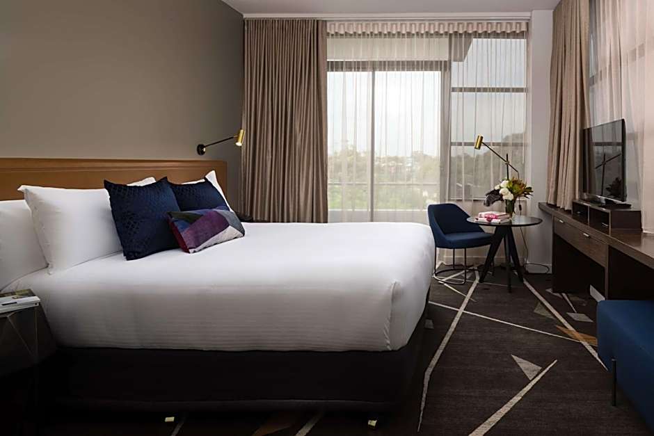These hotel rooms offer new and modern furniture and fittings. Bedding is one king size bed.